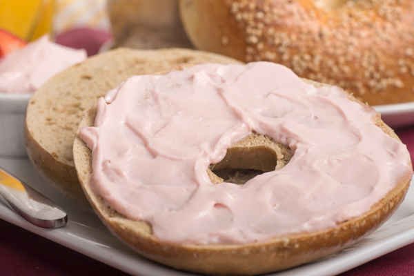 Flavored Cream Cheese Bagel is a sliced bagel spread with your choice of flavored cream cheese.